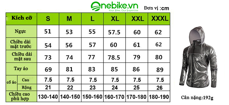 Bảng kích thước size Áo mưa đi xe đạp WEST BIKING