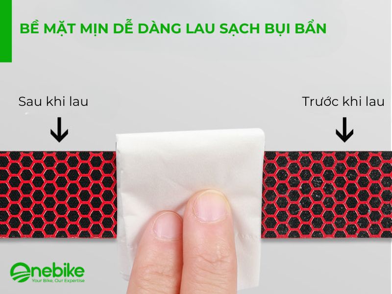 Kết cấu bề mặt mịn giúp bạn dễ dàng lau sạch bụi bẩn và mồ hôi sau mỗi chuyến đi. Chỉ với một vài động tác đơn giản, băng quấn sẽ luôn giữ được sự sạch sẽ như mới.