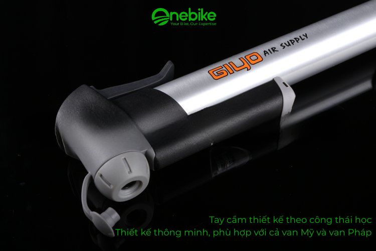 Thiết kế thông minh, phù hợp với cả van Mỹ và van Pháp, giúp bạn linh hoạt hơn trong việc bơm lốp xe.