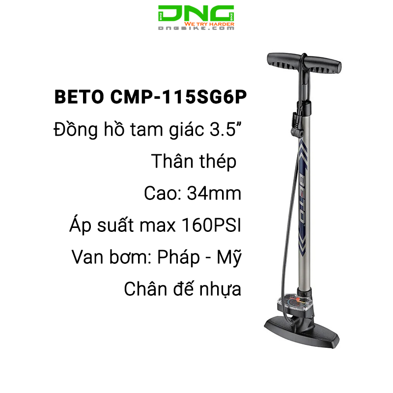 BETO là thương hiệu chuyên cung cấp các phụ kiện chuyên dụng cho xe đạp đặt biệt là bơm xe. Trong đó, bơm sàn xe đạp BETO CMP-115SG6 là một trong những dòng bơm sàn cao cấp hãng BETO được rất nhiều khách hàng tin tưởng và lựa chọn sử dụng.