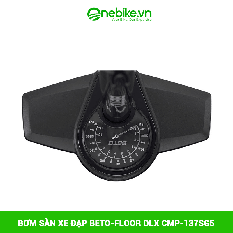 Bơm sàn xe đạp BETO - FLOOR DLX có đồng hồ đo áp suất 160PSI, mặt đồng hồ to nên dễ dàng nhìn rõ.