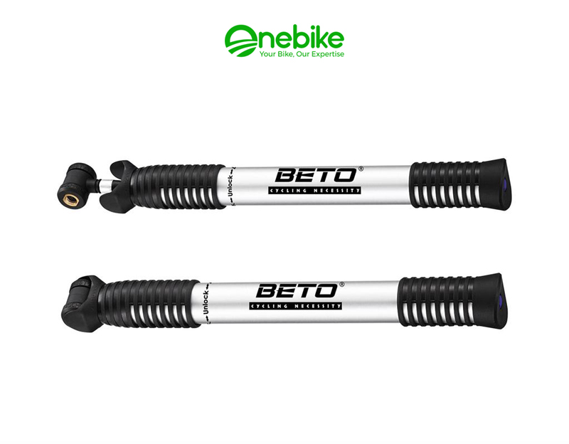 BETO-MINI-PUMP ALLOY CTH-009A sử dụng đầu valve tự đảo chiều phù hợp Schrader/Presta và valve khóa vặn