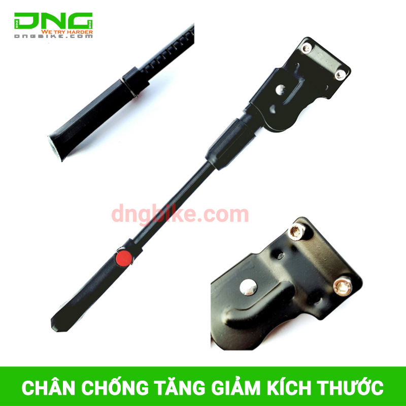Chân chống xe đạp gắn khung có thể tăng giảm chiều cao chân chống, phù hợp cho các dòng xe đạp thể thao địa hình sử dụng bánh xe có kích thước từ 24" đến 26".