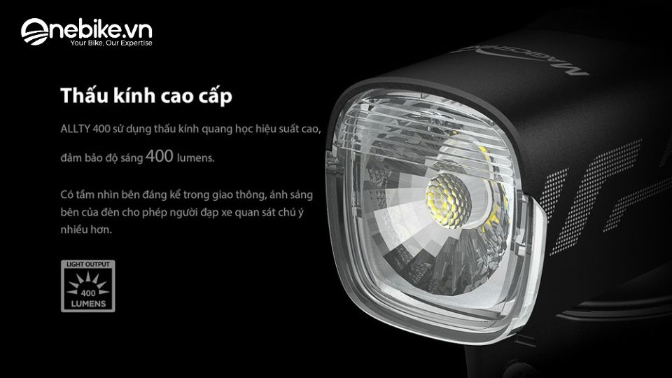Công Nghệ LED Luminus SST-20: Sử dụng công nghệ LED hiệu suất cao, đèn ALLTY 400 cho độ sáng lên đến 400 lumen, đủ để chiếu sáng các cung đường tối tăm hay khi bạn phải đối mặt với điều kiện ánh sáng yếu. Tầm chiếu sáng đạt tới 89m, giúp bạn dễ dàng nhận diện các vật cản và hướng đi.