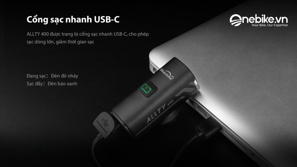 Cổng Sạc USB-C: Đèn hậu sử dụng cổng Micro USB-C, dễ dàng sạc lại và giúp bạn tiết kiệm thời gian trong việc chuẩn bị cho những chuyến đi dài.