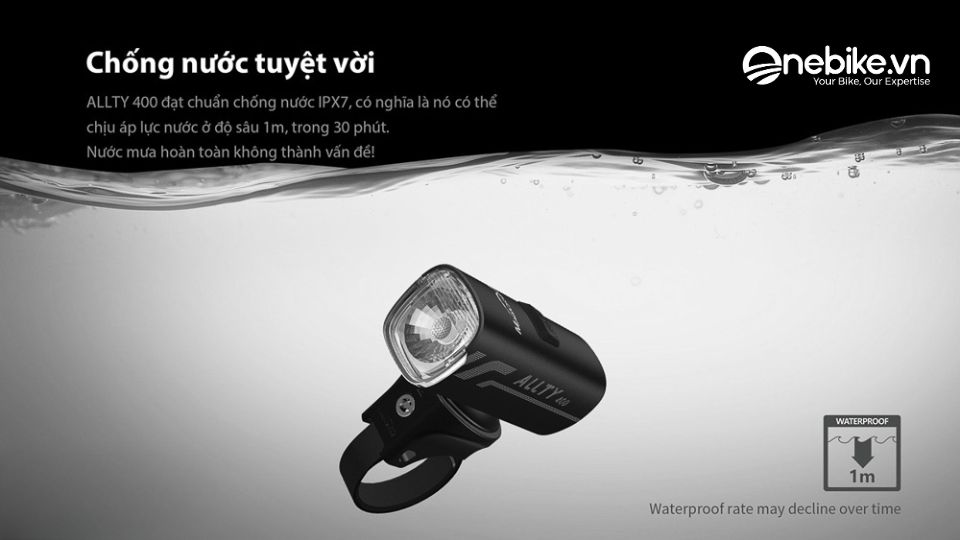 Chịu Được Mọi Điều Kiện Thời Tiết: Với chuẩn chống nước IPX7, đèn pha và đèn hậu của bạn sẽ luôn hoạt động hiệu quả, ngay cả khi bạn gặp phải mưa hoặc điều kiện thời tiết xấu.