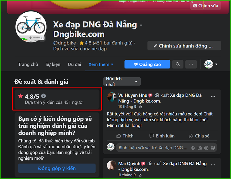 Hơn 450 khách hàng đã đánh giá về DNGBIKE trên trang Facebook: Xem link khách hàng đánh giá trên Facebook tại đây LINK FACEBOOK