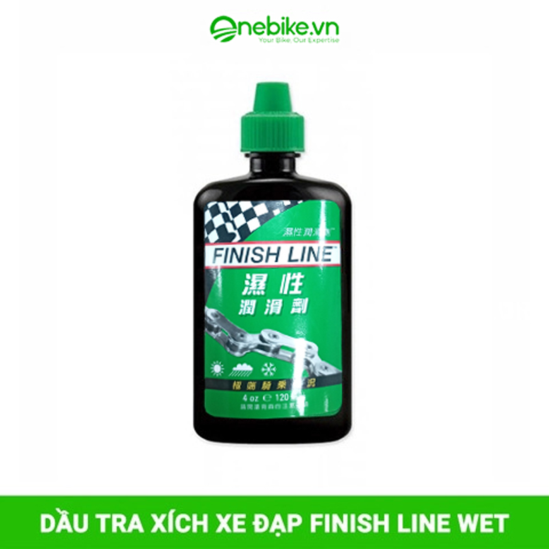 Dầu tra xích xe đạp Finish Line Wet phù hợp với người đạp xe đường dài mùa nắng khô, bụi bẩn với khả năng vượt trội trong điều kiện thời tiết khô và bụi bẩn, làm khô nhanh và tạo nên một hệ thống được bảo vệ khép kín, chống lại bụi bẩn .