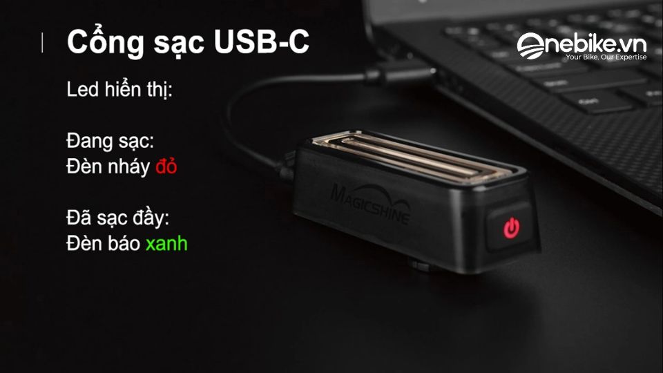 Cổng Sạc USB-C Tiện Lợi. Đèn hậu xe đạp MAGICSHINE SEEMEE 100 V2.0 sử dụng cổng sạc USB-C hiện đại, giúp việc sạc trở nên nhanh chóng và tiện lợi hơn rất nhiều. Đèn có khả năng sạc đầy chỉ trong thời gian ngắn, tiết kiệm thời gian và rất dễ dàng mang theo trong các chuyến đi.