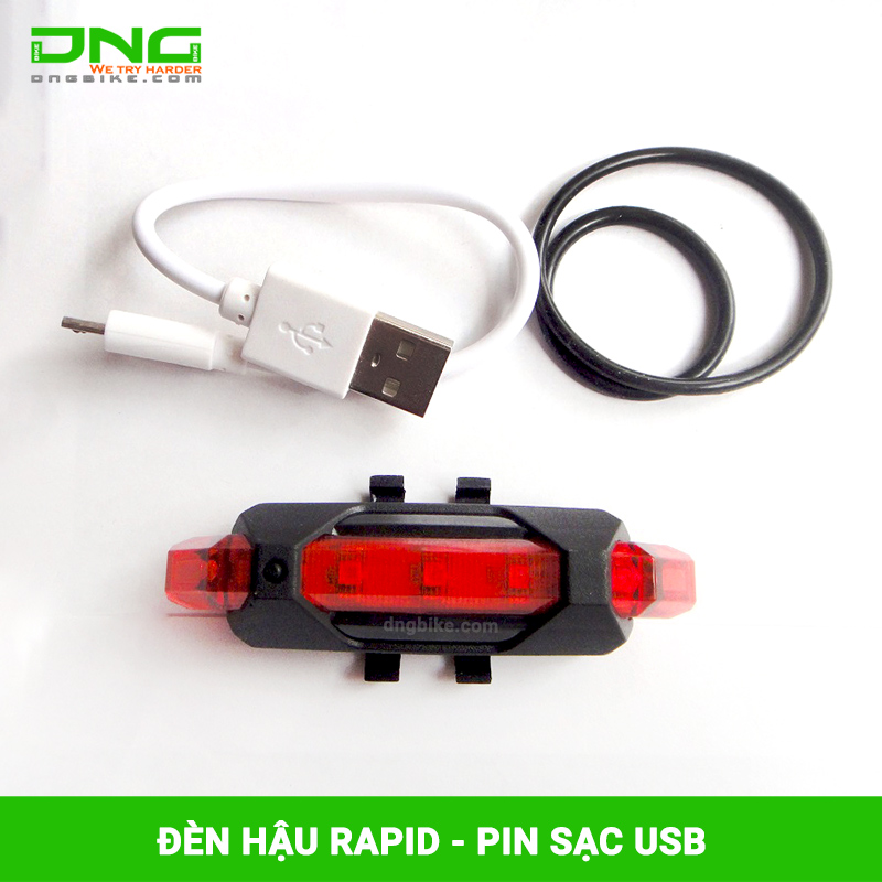 Đèn hậu xe đạp pin sạc RAPID sử dụng 3 đèn LED hiệu xuất ánh sáng cao. Với các chế độ sang (ổn định / nhấp nháy thấp / nhấp nháy / nhấp nháy cao).
