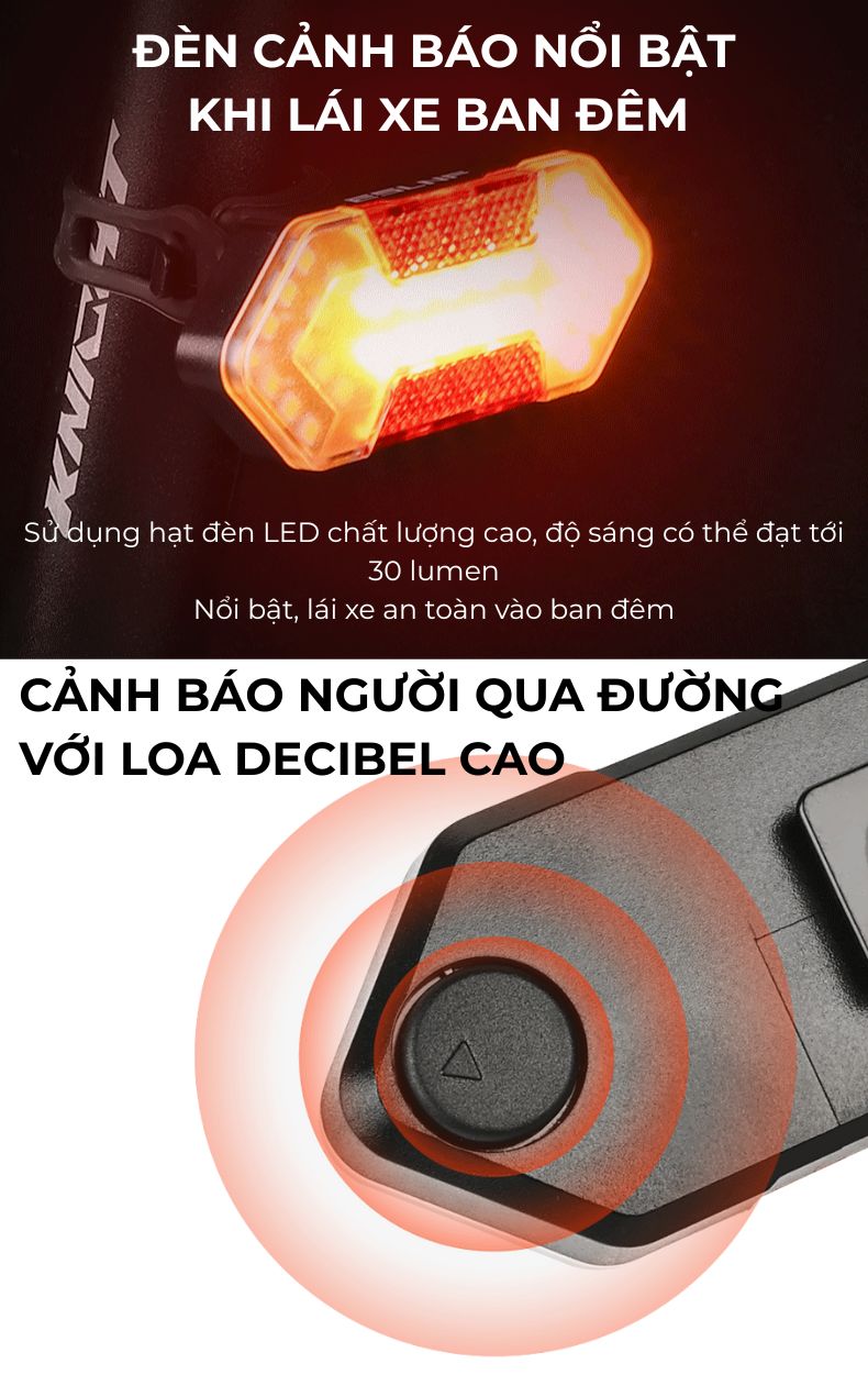 Sử dụng hạt đèn LED chất lượng cao, độ sáng đạt tới 30 lumen – đủ nổi bật để cảnh báo các phương tiện khác từ xa. Đặc biệt hữu ích khi di chuyển trong điều kiện ánh sáng yếu hoặc đêm khuya. Bên cạnh đó, không chỉ phát sáng, đèn còn được tích hợp loa cảnh báo âm thanh lớn, giúp thu hút sự chú ý của người đi đường, tăng thêm mức độ an toàn khi rẽ hoặc dừng lại.