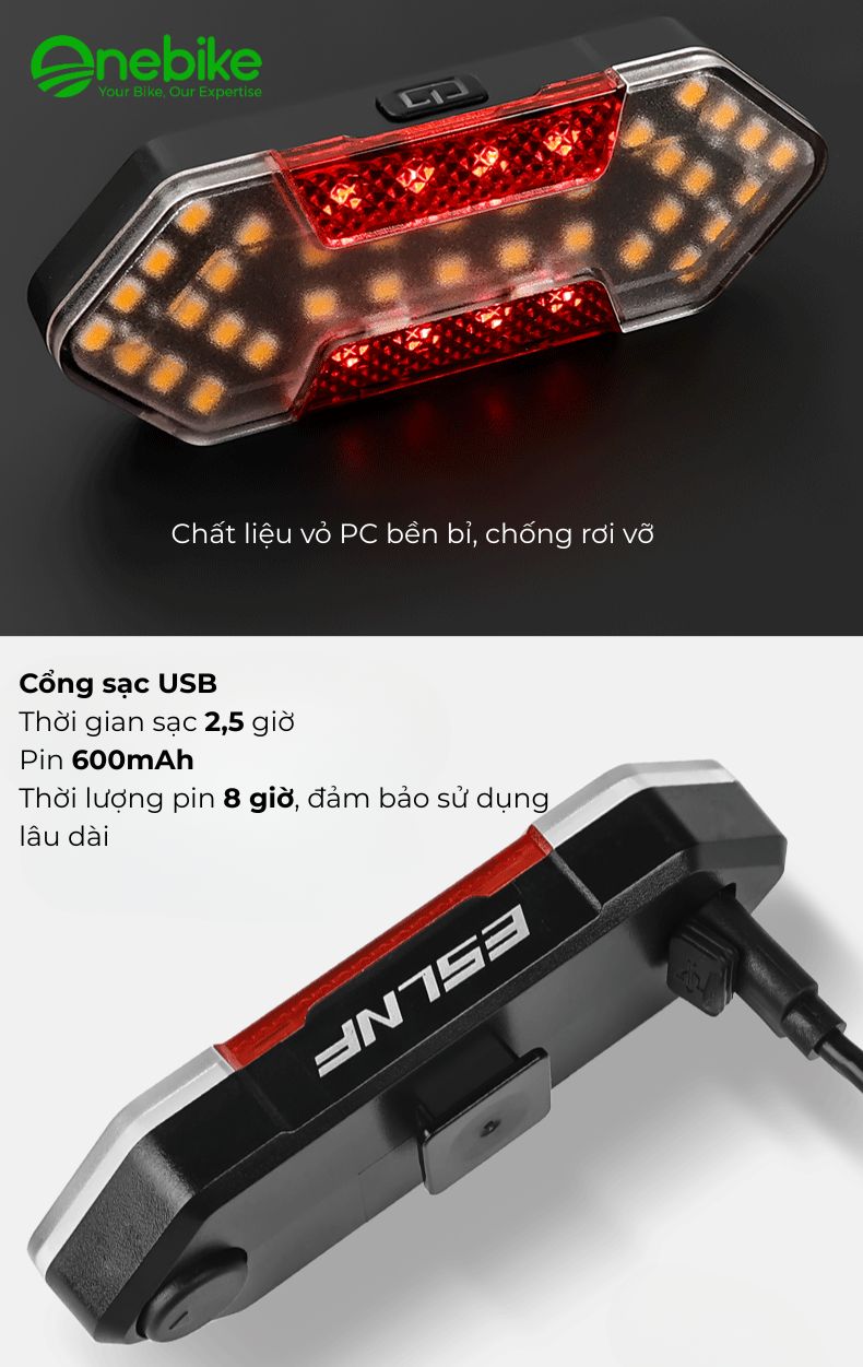 Với hiệu suất pin như trên, Đèn hậu xe đạp Xi Nhan có Remote không dây ESLNE cho phép bạn thoải mái sử dụng trong nhiều chuyến đi mà không lo hết pin giữa chừng.