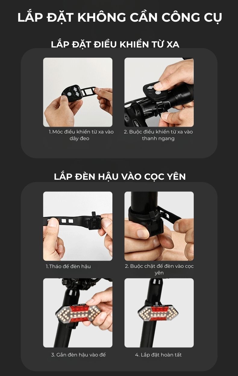 Đèn hậu xe đạp xi nhan ESLNE rất dễ dàng lắp đặt mà không cần dụng cụ hỗ trợ, bạn có thể lắp đặt vào xe và sử dụng một cách nhanh chóng.
