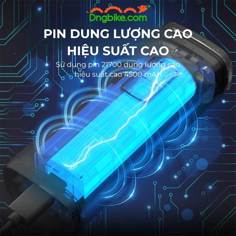 Sử dụng pin lithium 21700 hiệu suất cao, đèn pha CYCLAMI BR-2000 có dung lượng pin lên đến 4500mAh, cho thời gian hoạt động từ 4 đến 10 giờ tùy vào chế độ sáng. Điều này đặc biệt phù hợp với các chuyến đi dài hoặc phượt đêm.