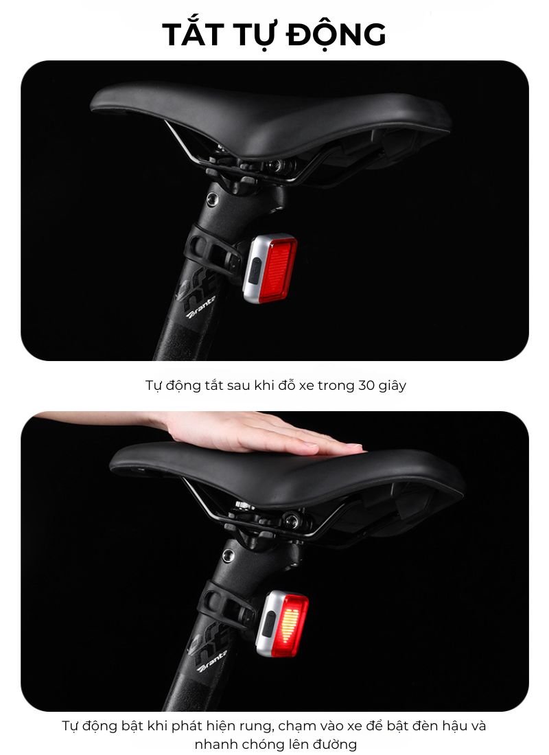 Đèn hậu cảm biến xe đạp 8 chế độ ESLNF thông minh tự động chuyển sang chế độ ngủ sau 30 giây khi không sử dụng, giúp tiết kiệm năng lượng. Khi phát hiện rung động hoặc chạm vào xe, đèn sẽ tự động bật và sẵn sàng hoạt động. Đây là tính năng lý tưởng cho việc sử dụng hàng ngày, mang đến sự tiện lợi tối đa và dễ dàng cho mọi chuyến đi.