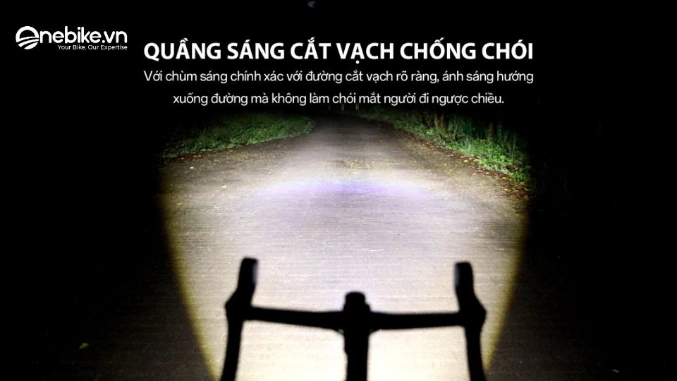 Độ sáng 1100 lumens: Đèn cung cấp độ sáng mạnh mẽ lên tới 1100 lumen, cho khả năng chiếu sáng tối đa lên đến 100m. Với thấu kính chuyên dụng, quầng sáng được cắt ngang giúp ánh sáng phân bổ đồng đều và không làm chói mắt người đi đối diện, nâng cao tính an toàn khi tham gia giao thông.