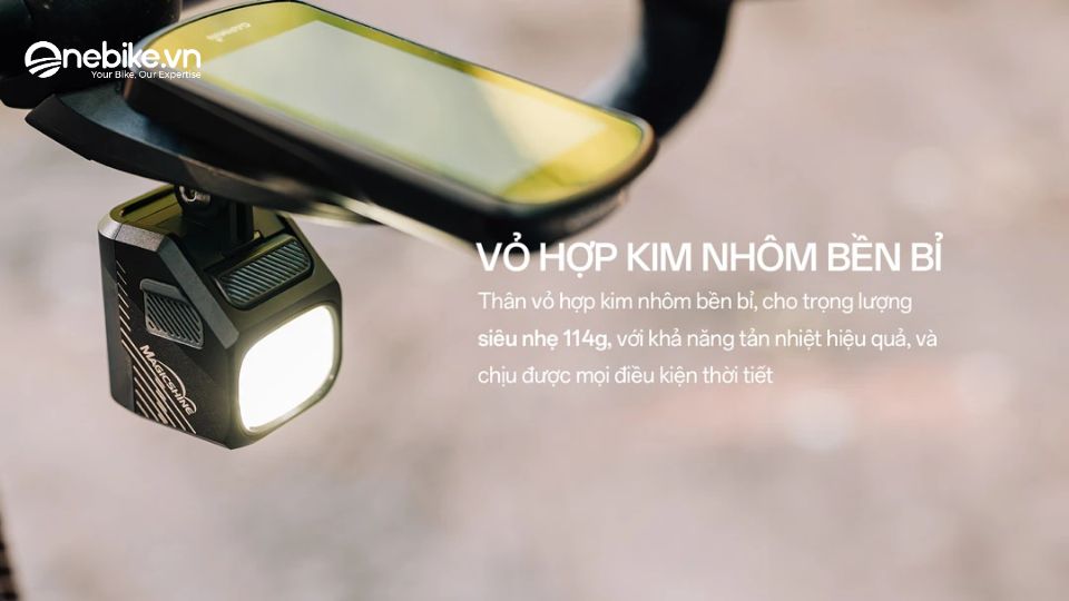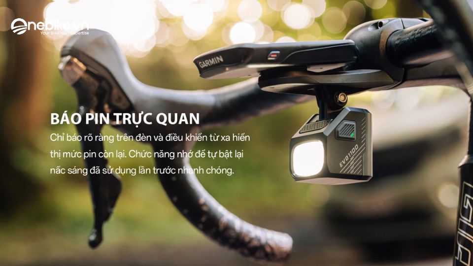 Thiết kế nhẹ nhàng, chắc chắn: EVO1100 có thiết kế nhỏ gọn, trọng lượng chỉ 114g, giúp giảm thiểu tối đa cản trở khi gắn lên xe. Thân đèn được làm từ hợp kim nhôm hàng không cao cấp và nhựa chất lượng, giúp đèn chịu được va đập mạnh và chống chịu tốt trong các điều kiện thời tiết khắc nghiệt.