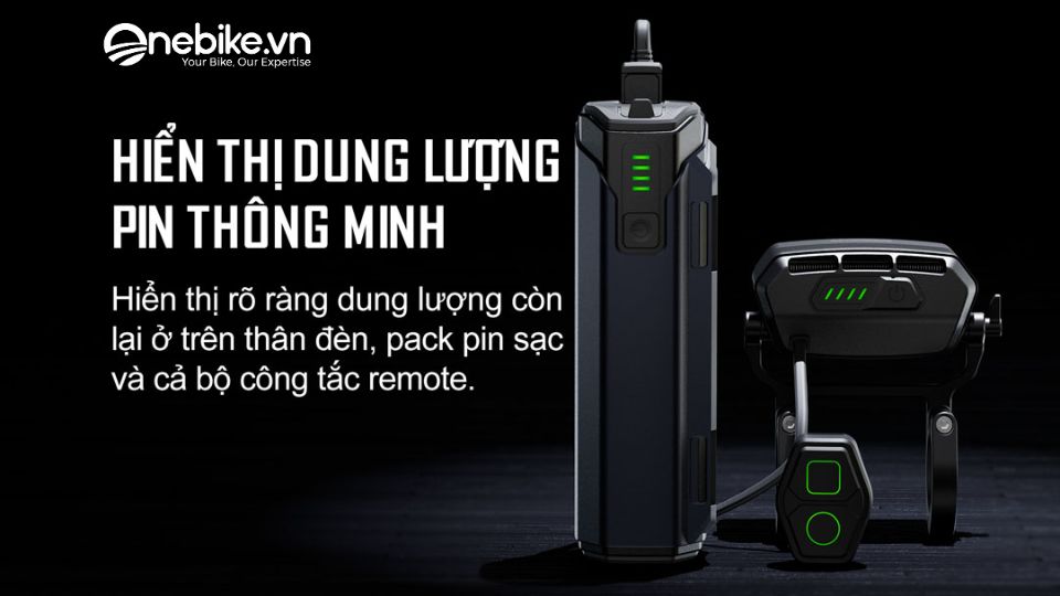 | Kích thước | 5*4.09*1.81 in / 127*104*46 mm (đèn và giá đỡ tay lái) 6.88*2.44*2.21 in / 175*62*56 mm (bộ pin) |