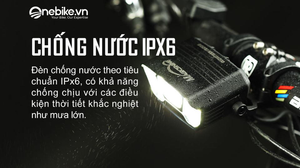 Đạt chuẩn chống nước IPX6, đèn có thể hoạt động tốt trong điều kiện thời tiết mưa gió khắc nghiệt. Ngoài ra, đèn còn có khả năng chống va đập ở độ cao 1m, đảm bảo độ bền và tính ổn định trong mọi điều kiện.