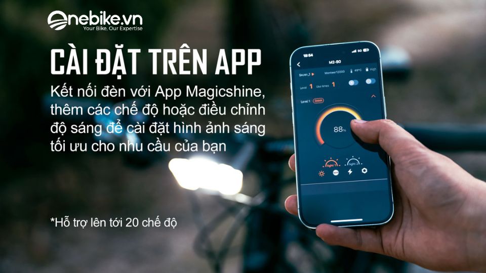 Với ứng dụng Magicshine, bạn có thể tải và cài đặt trên điện thoại để tùy chỉnh các chế độ sáng của đèn một cách dễ dàng và chính xác.