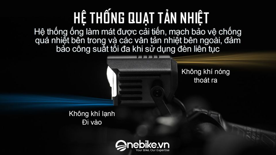 Đèn pha xe đạp siêu sáng MAGICSHINE MONTEER 12000 sở hữu hệ thống kiểm soát nhiệt cực kỳ hiệu quả, nhờ vào các ống dẫn khí và lá tản nhiệt giúp đèn duy trì hiệu suất làm mát cao. Đèn có thể hoạt động ổn định trong khoảng nhiệt độ từ -20°C đến 40°C, đảm bảo hoạt động hiệu quả dù trong điều kiện thời tiết khắc nghiệt.