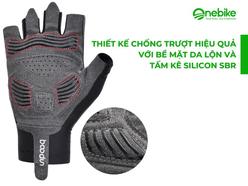 Một trong những tính năng nổi bật của Găng tay xe đạp BOODUN là lớp lót bàn tay làm bằng Silicon với độ ma sát cao. Tính năng này giúp chống trơn trượt hiệu quả, bảo đảm bạn có thể cầm lái chắc chắn mà không lo bị trượt tay. Điều này rất quan trọng, đặc biệt trong những điều kiện thời tiết khó khăn hoặc khi bạn đang di chuyển trên những đoạn đường gồ ghề.