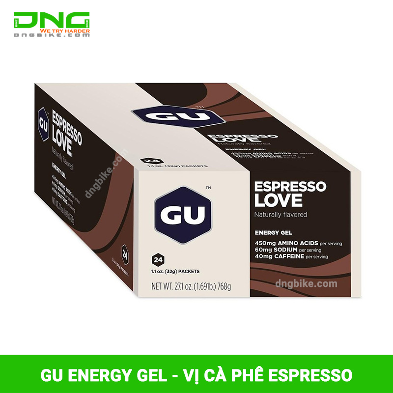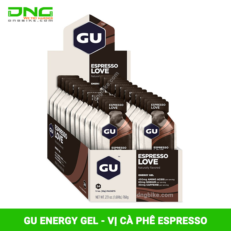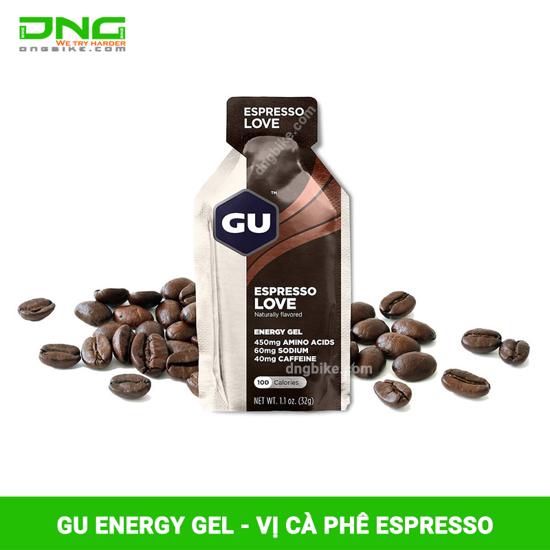 GU Energy Gels Espresso Love là Gel bổ sung năng lượng vị cà phê Espresso được tạo ra để bổ sung năng lượng cho các hoạt động tập luyện và thi đấu hàng ngày như chạy bộ, đạp xe, thi đấu cường độ cao.