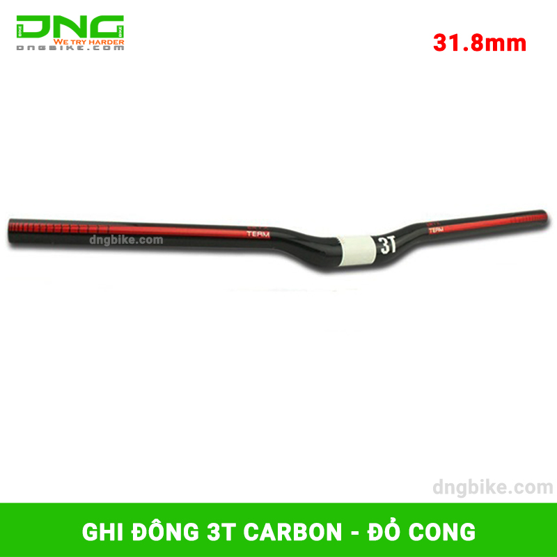 Ghi đông CONG dành cho xe đạp mtb CARBON 3T 31.8mm - Phiên bản màu ĐỎ