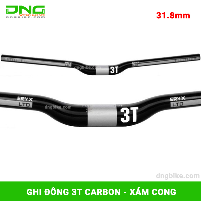 Ghi đông CONG dành cho xe đạp địa hình CARBON 3T 31.8mm - Phiên bản màu XÁM