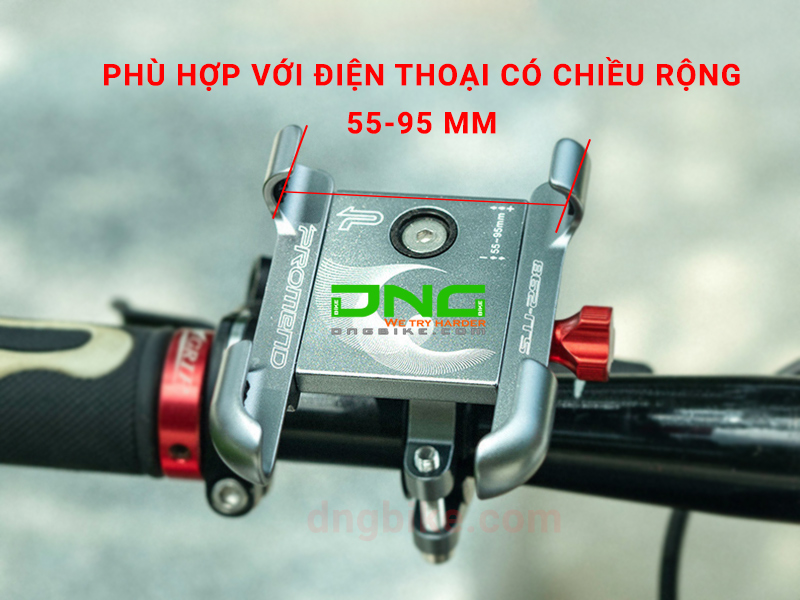Giá kẹp điện thoại gắn xe đạp PROMEND SJJ-298 sử dụng phù hợp cho các dòng điện thoại có kích thước chiều ngang từ 55-95mm
