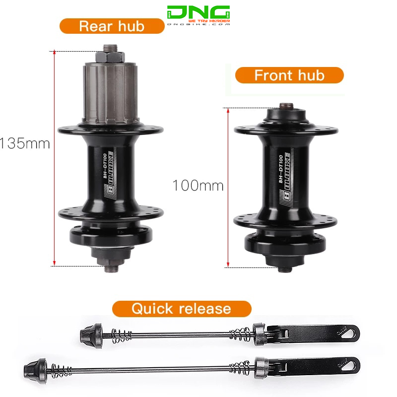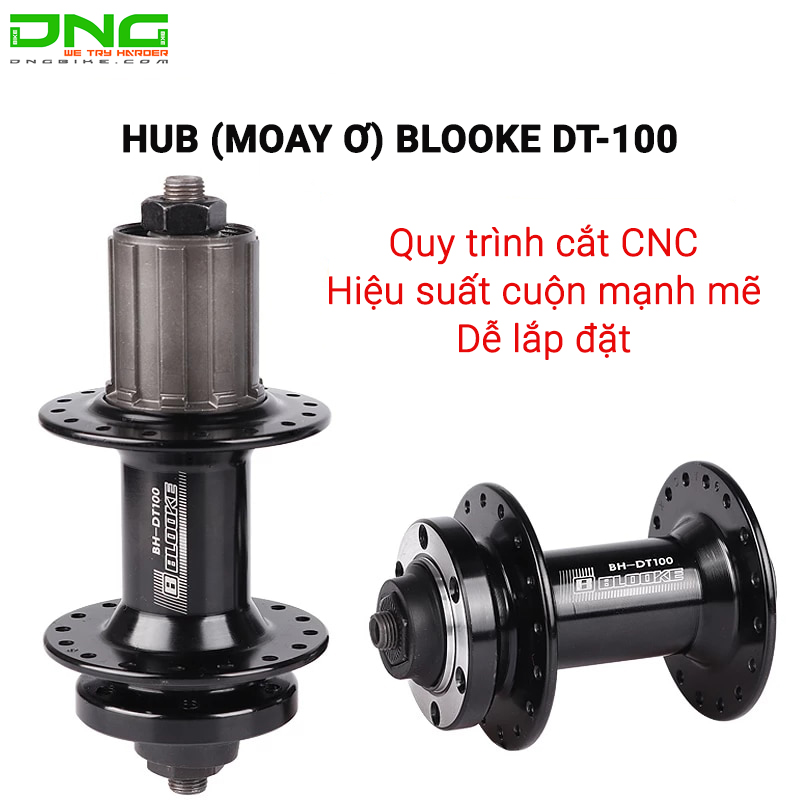 Hub (Moay ơ) xe đạp BLOOKE DT-100 được làm bằng nhôm 6061 siêu nhẹ, trọng lượng chỉ khoảng 830g. Hub có 2 loại: 32 lỗ và 36 lỗ. Kích thước moay ơ trước 100mm, moay ơ phía sau 135mm. Hub (Moay ơ) xe đạp BLOOKE DT-100 phù hợp cho các dòng xe đạp thể thaoleo núi 7- 11 tốc độ, hub sử dụng cho hệ thống phanh đĩa gắn 6 ốc.