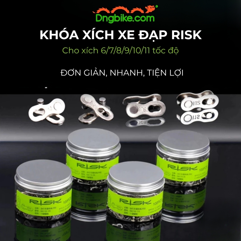 Khóa nối sên xích xe đạp RISK là phụ kiện không thể thiếu cho mọi chân đạp. Với thiết kế nhỏ gọn nhưng chắc chắn, sản phẩm giúp nối hai đầu sên một cách nhanh chóng, dễ dàng, đồng thời đảm bảo độ bền và an toàn khi vận hành.