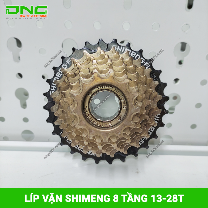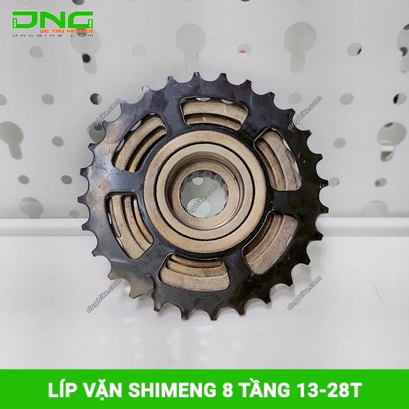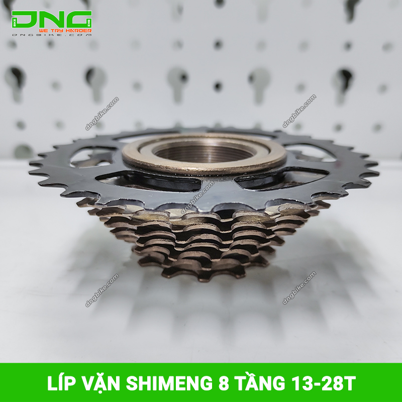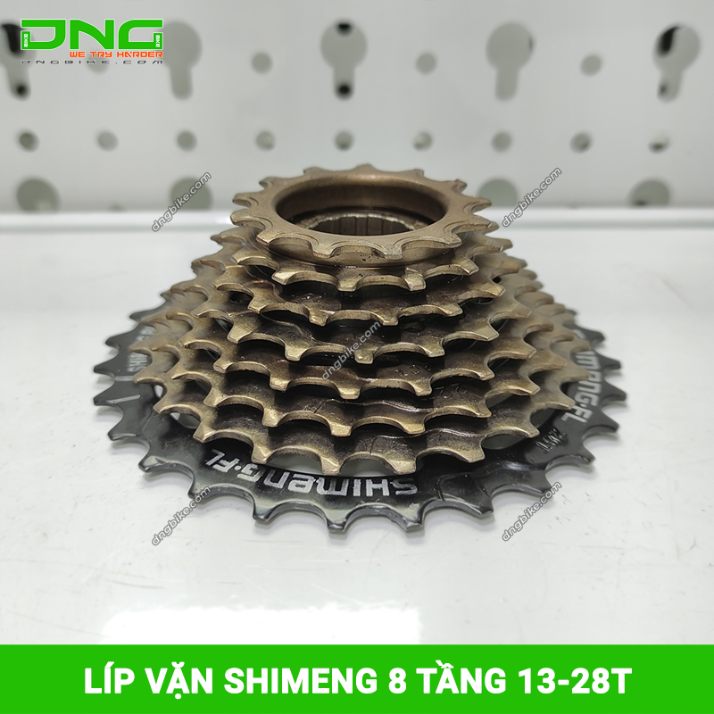 Líp xe đạp Shimeng 8 tốc độ sử dụng cho các dòng xe đạp thể thao giá rẻ như xe đạp địa hình MTB, và dòng xe Touring, các dòng xe đạp đường phố sử dụng bộ truyền động 8 tốc độ và dùng cho các loại moay ơ vặn.