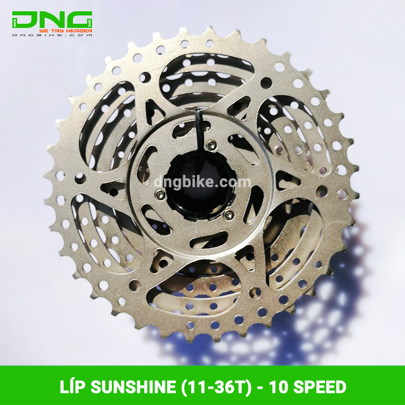 Líp SUNSHINE 11-36T 10 tốc độ là dòng líp xe đạp thể thao thương hiệu SUNSIZE (Đài Loan) với khả năng tương thích mạnh mẽ, tối ưu cho các dòng xe hạng trung như xe đạp thể thao, xe đạp địa hình, xe đạp đường phố,..