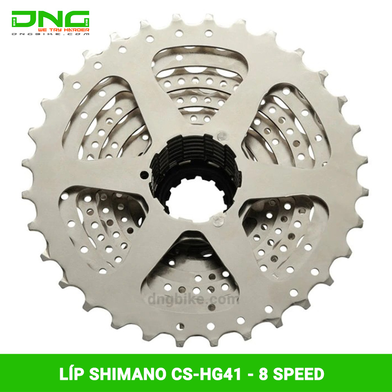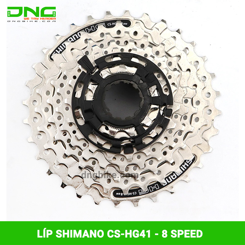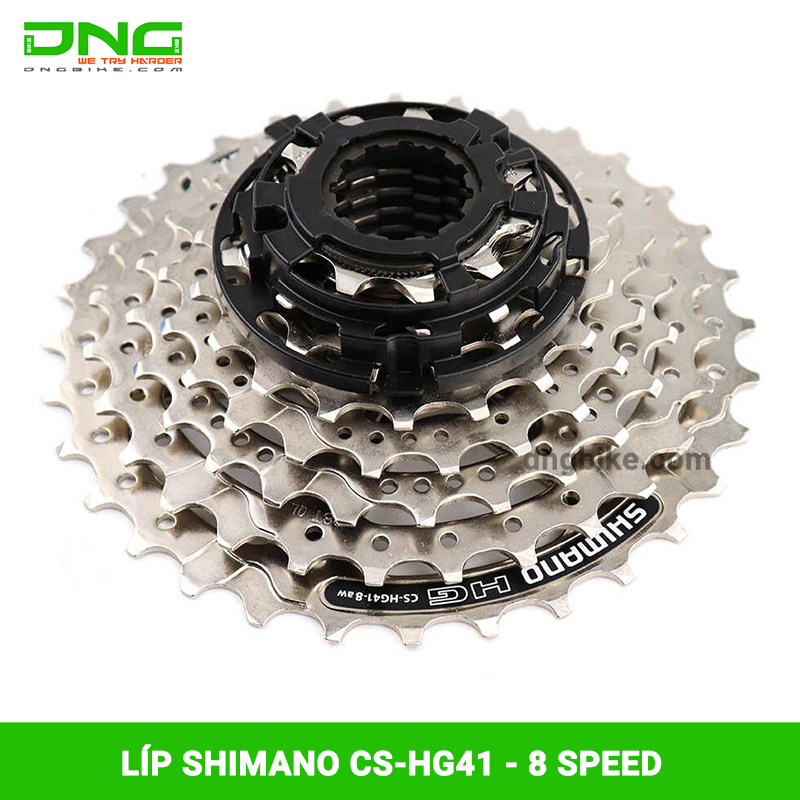 Líp xe đạp SHIMANO CS-HG41 8 tốc độ là sản phẩm tầm trung chính hãng đến từ thương hiệu SHIMANO được sản xuất tại Indonesia / Singapore sử dụng cho các dòng xe đạp thể thao địa hình, xe đạp touring đường phố,.. sử dụng bộ truyền động 8 speed