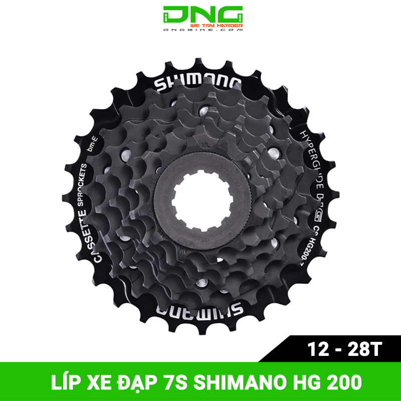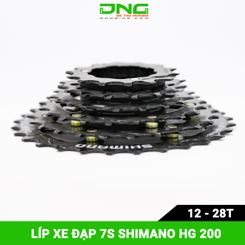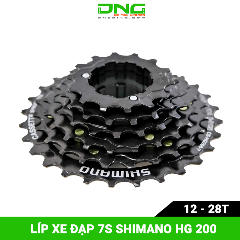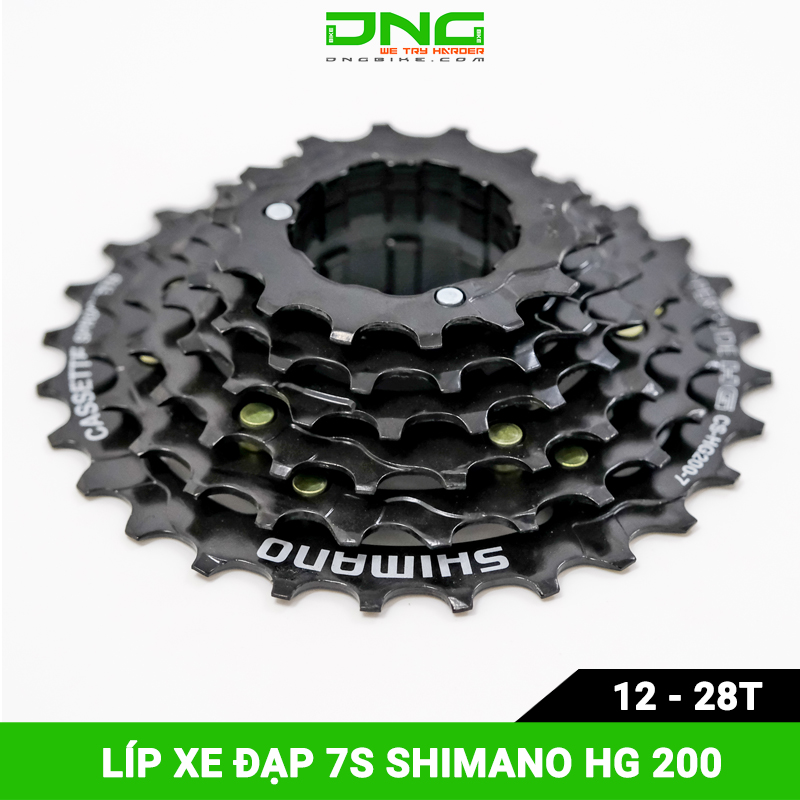 Líp xe đạp 7s Shimano HG200 có 2 kích thước 12-28T và 12- 32T giúp chúng ta dễ dàng lựa chọn phù hợp với nhu cầu di chuyển. Dòng líp răng nhỏ giúp chiếc xe dễ dàng đạt được tốc độ cao hơn, mang đến hiếu suất tối ưu và an toàn tối đa cho bộ chuyển động của xe.