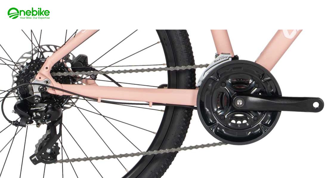 GIANT LIV MEME 1 2025 sử dụng bộ truyền động SHIMANO TOURNEY 24 tốc độ: củ đề Shimano TOURNEY TX 8S, líp Shimano 12-32T 8S, giò dĩa cốt vuông 3 dĩa 24/34/42T.