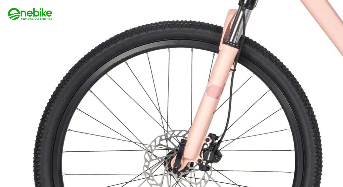 Xe đạp thể thao LIVMEME 1 2025 được trang bị bộ bánh xe với vành hợp kim nhôm 2 lớp, lốp 26 inch với thiết kế nhiều gai, bề mặt lốp lớn giúp tăng cường độ bám và độ ma sát với mặt đường.