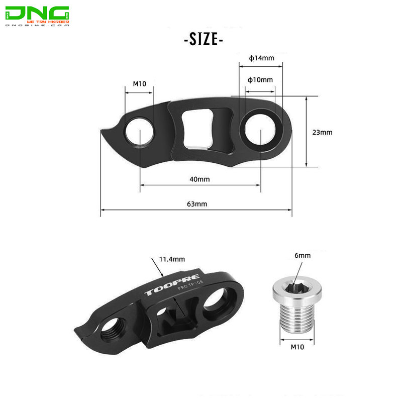 Móc nối dài củ đề là sản phẩm dùng để nối bass củ đề ra dài hơn trong trường hợp anh em thay đổi líp có kích cỡ lớn hơn. Móc nối dài củ đề xe đạp TOOPRE được gia công bằng công nghệ CNC hiện đại cho độ chính xác và tinh xảo cao. Móc sử dụng cho các dòng xe đạp thể thao địa hình có líp 40T/42T/46T/50T/52T, v.v., xe đạp đường trường 32T/ 36T/40T/42T và các loại xe tự do khác.