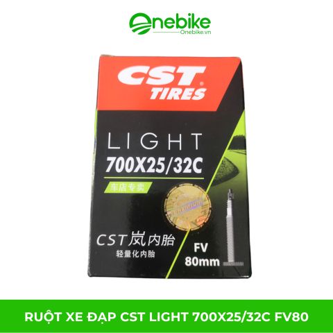 Ruột xe đạp CST LIGHT 700x25/32c FV80 là ruột xe đạp của hãng CST chuyên sản xuất lốp ruột cho xe đạp, xe máy và cả ô tô... xuất xứ Đài Loan sử dụng cho các loại xe đạp leo núi, xe đạp địa hình, xe đạp mtb có cỡ bánh 700c (28"), độ rộng vành từ 25 đến 32c.