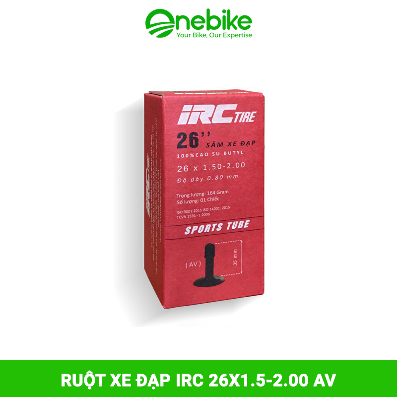 Ruột xe đạp IRC 26x1.5-2.00 AV có độ dày 0.8 mm, săm được sản xuất với 100% cao su butyl chất lượng tuyệt hảo, chúng tôi đem đến cho bạn một sản phẩm có độ kín khí cao gấp nhiều lần so với săm cao su thiên nhiên thông thường.