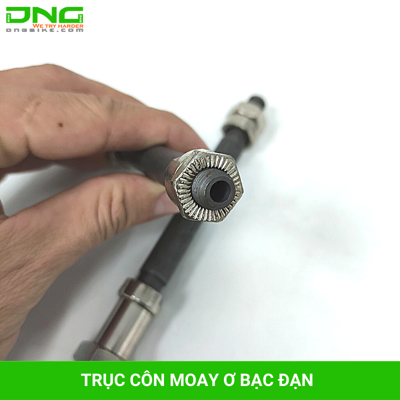 Trục côn có thiết kế cốt rỗng phù hợp với ty bật mở khóa nhanh phổ biến trên các dòng xe đạp thể thao hiện nay.