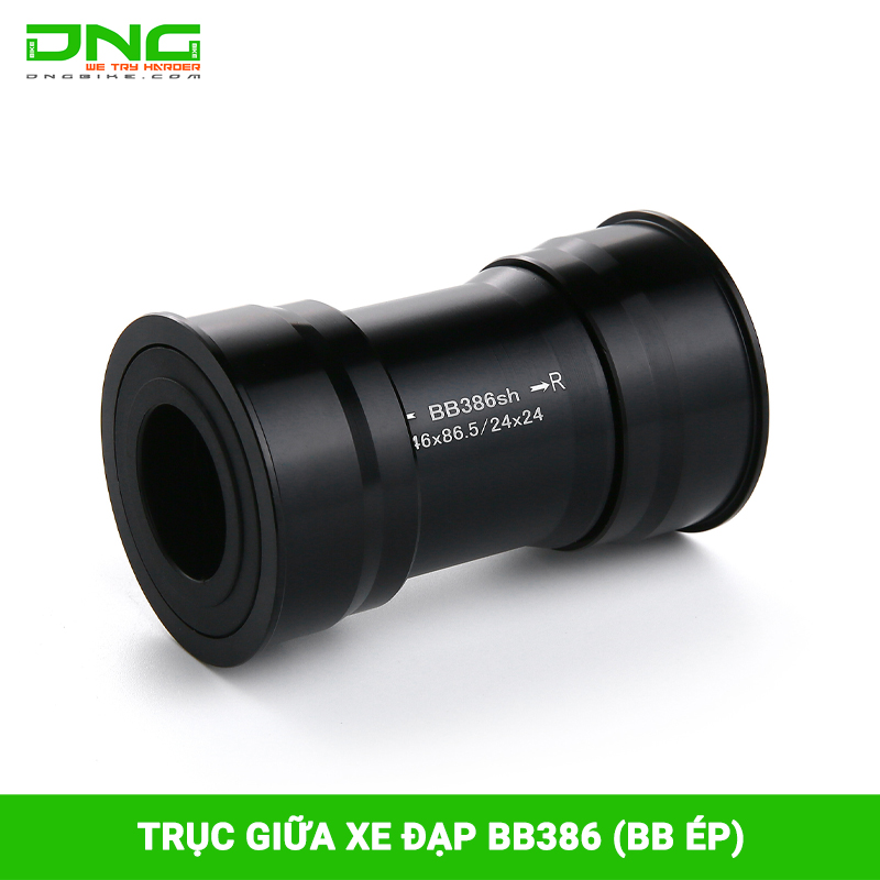 Trục giữa xe đạp BB386 (BB ép) sử dụng cho các dòng xe đạp leo núi. Trục BB386 có cấu tạo ổ trục bên ngoài cho phép sử dụng ổ bi kín có đường kính lớn hơn, tăng độ êm và độ bền.