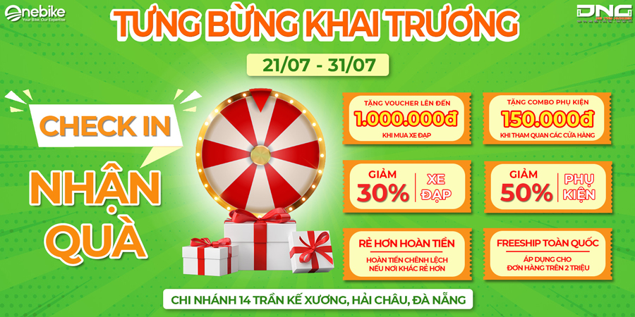 Nhân dịp khai trương chi nhánh mới kinh doanh dòng sản phẩm Xe đạp TREK chính hãng và là chi nhánh thứ 03 của One Bike (Tiền thân là DngBike) tại 14 Trần Kế Xương, Đà Nẵng. OneBike gửi đến Quý khách hàng hàng loạt các ưu đãi và quà tặng hấp dẫn.