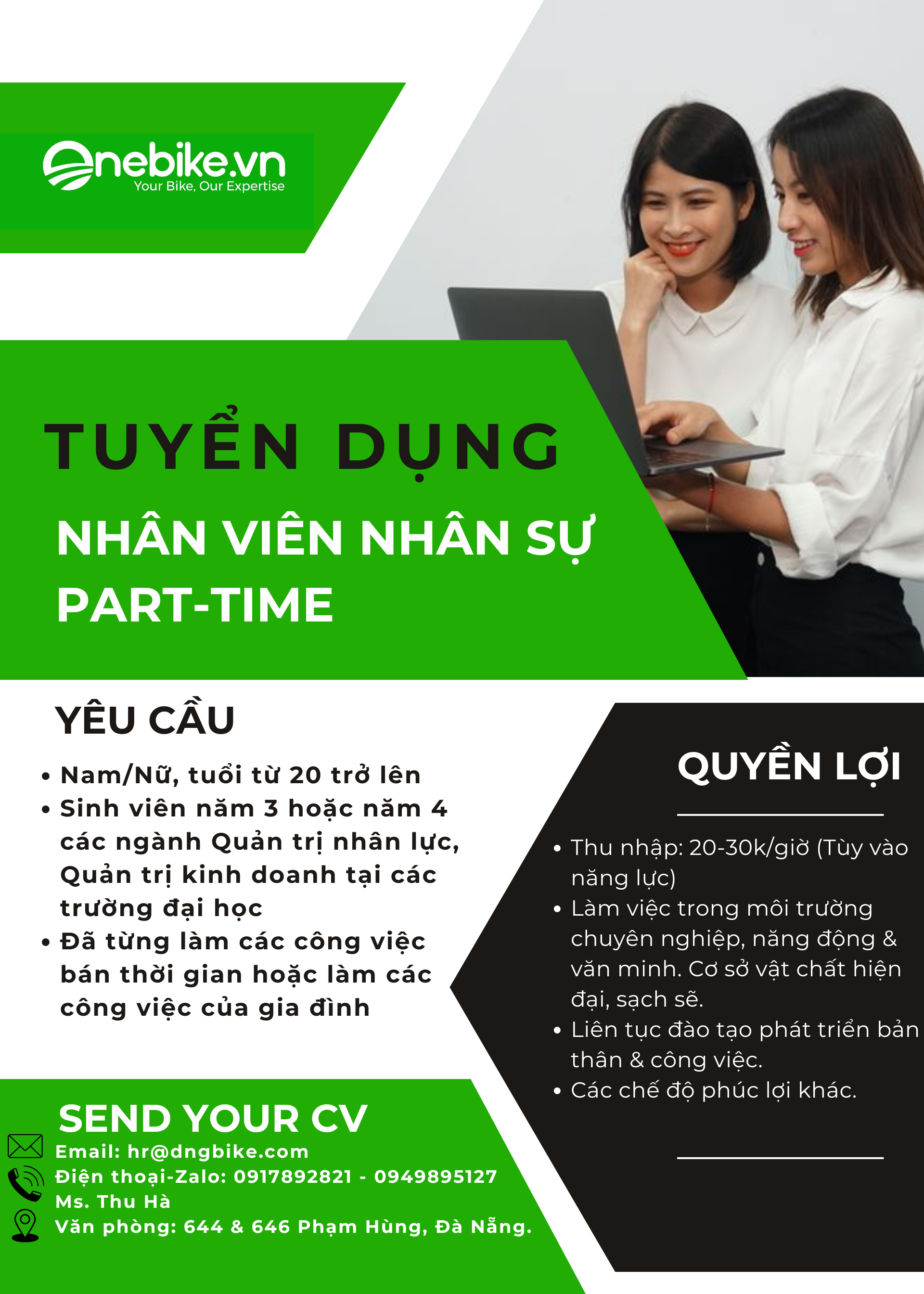 HỆ THỐNG PHÂN PHỐI VÀ SỮA CHỮA XE ĐẠP THỂ THAO ONEBIKE TUYỂN DỤNG NHÂN VIÊN NHÂN SỰ PART-TIME