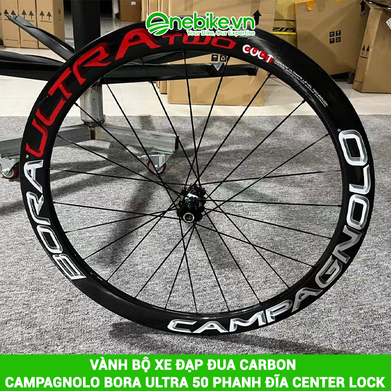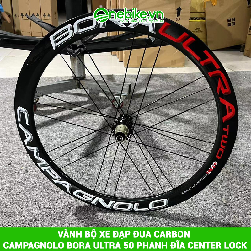Vành CARBON CAMPAGNOLO BORA ULTRA 50 phanh đĩa center lock là vành xe đạp dành cho dòng xe Road được sản xuất bằng chất liệu full Carbon nhẹ, cứng cáp, thiết kế kiểu dáng khí động lực học giúp xe đạt được tốc độ cao và ổn định khi đua trên đường trường.