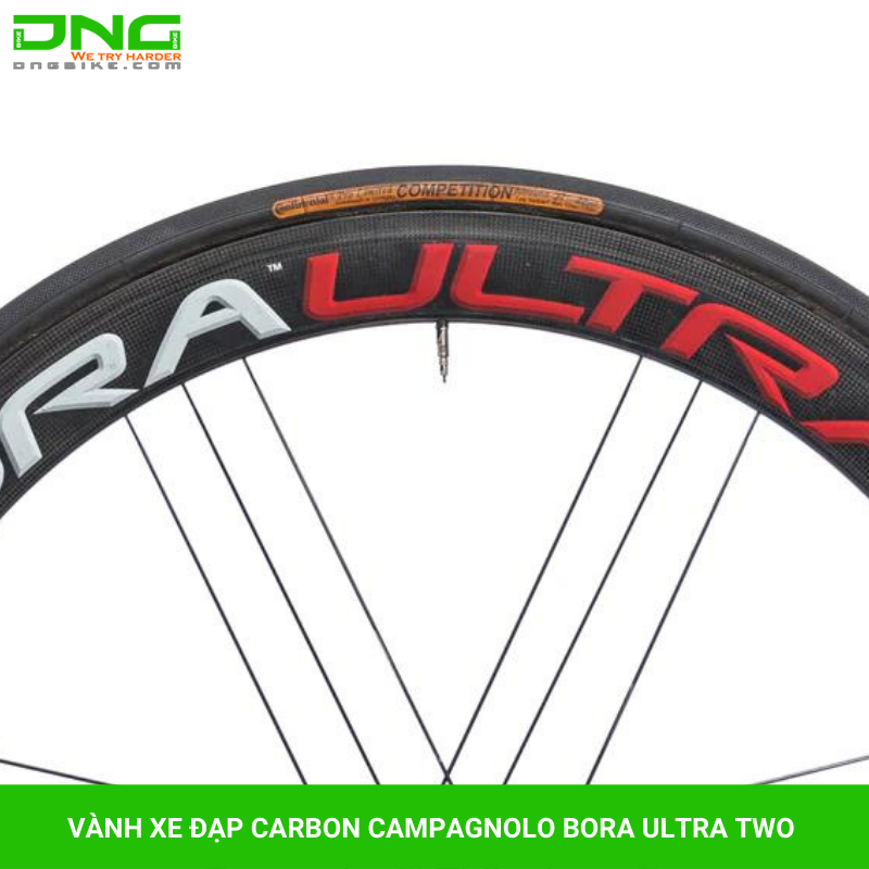 Vành bộ xe đạp đua CARBON CAMPAGNOLO BORA ULTRA TWO được sản xuất với bản vành cao 50mm, lực quán tính cao giúp xe có thể chạy ở tốc độ cao trong một quảng thời gian dài mà ít mất sức hơn các loại vành thấp. CAMPAGNOLO BORA ULTRA TWO tương thích với lốp xe thông thường (Clincher) 700cc. Kích thước (chiều cao / chiều rộng): 50mm / 24,2mm. Cân nặng khoảng 1650g