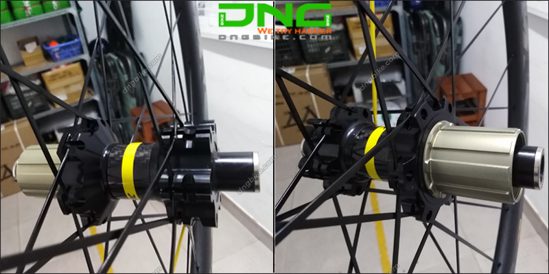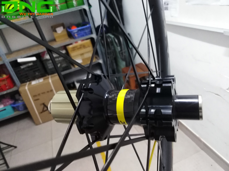 Hub sau ổ bi bạc đạn được xử lý với bề mặt Carbon 3k, hub 24 lỗ nan hoa, kích thước 142*12mm, sử dụng phù hợp líp 9-10-11 tầng