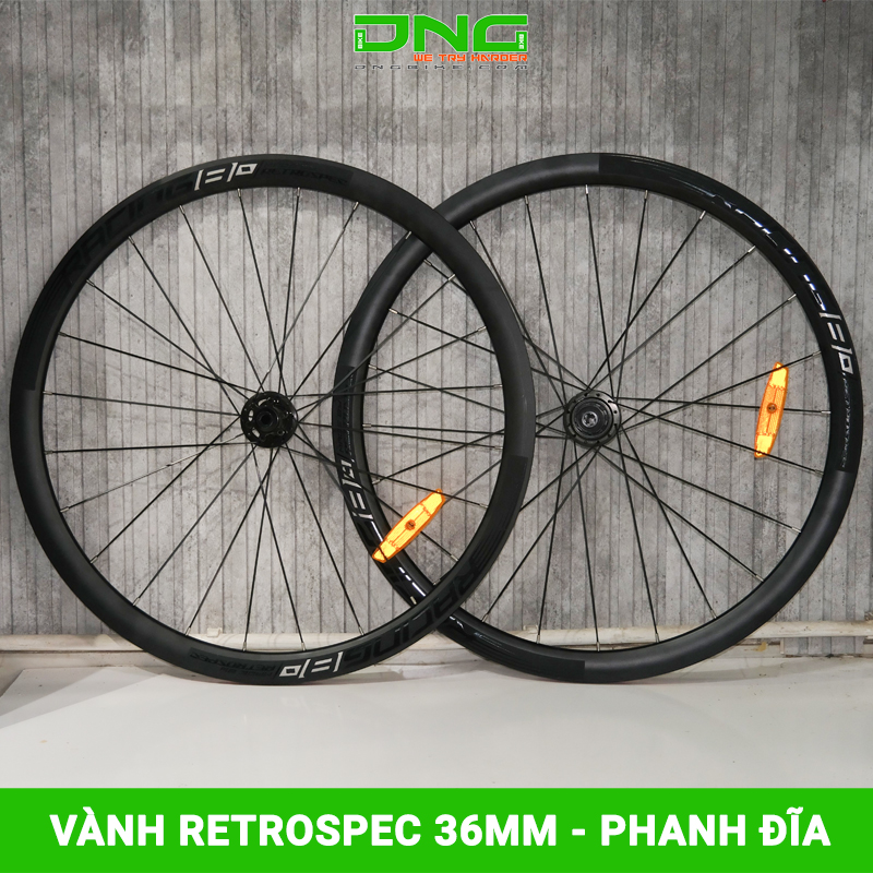 Vành bộ xe đạp đua RETROSPEC RACING 36mm Phanh đĩa 6 ốc có trục nòng trước 12 * 100mm và trục nòng sau 12 * 142mm, phù hợp với hầu hết các loại xe đạp đua hiện nay.