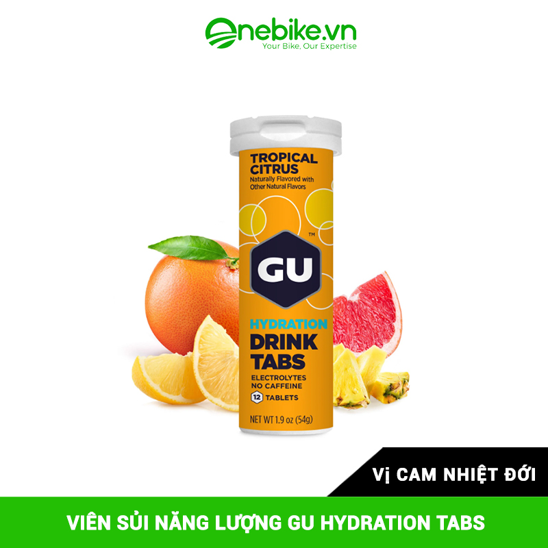 GU HYDRATION TABS là những viên sủi nổi chứa đựng các thành phần cần thiết để tăng cường năng lượng và duy trì sự cân bằng nước cơ thể. Với hỗn hợp điện giải, vitamin và khoáng chất quan trọng, viên sủi này giúp bổ sung nhanh chóng các chất điện giải, cung cấp năng lượng và tạo cảm giác sảng khoái khi hòa tan trong nước. Mỗi viên GU Hydration Drink Tabs chỉ chứa 10 calo, cùng với 320mg Natri và 55mg Kali giúp duy trì sự cân bằng lượng nước cơ thể và hạn chế mệt mỏi khi bổ sung các chất điện giải bị mất đi trong quá trình tập luyện.
